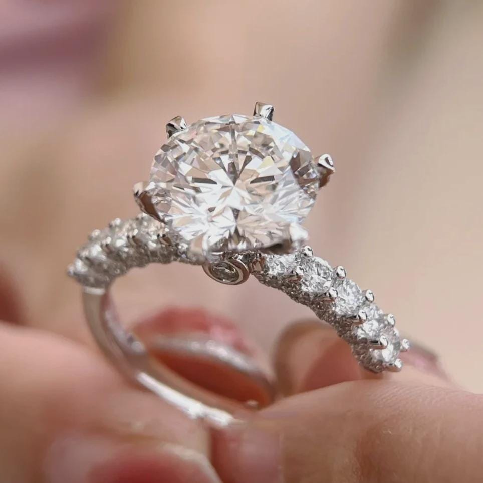 Radiate Sophistication with Opulence Aura’s Handcrafted Classic Round Moissanite Solitaire Ring, Pave Engagement Band, White Gold Wedding Ring, Bridal Gift For Her, 6 Prong Ring