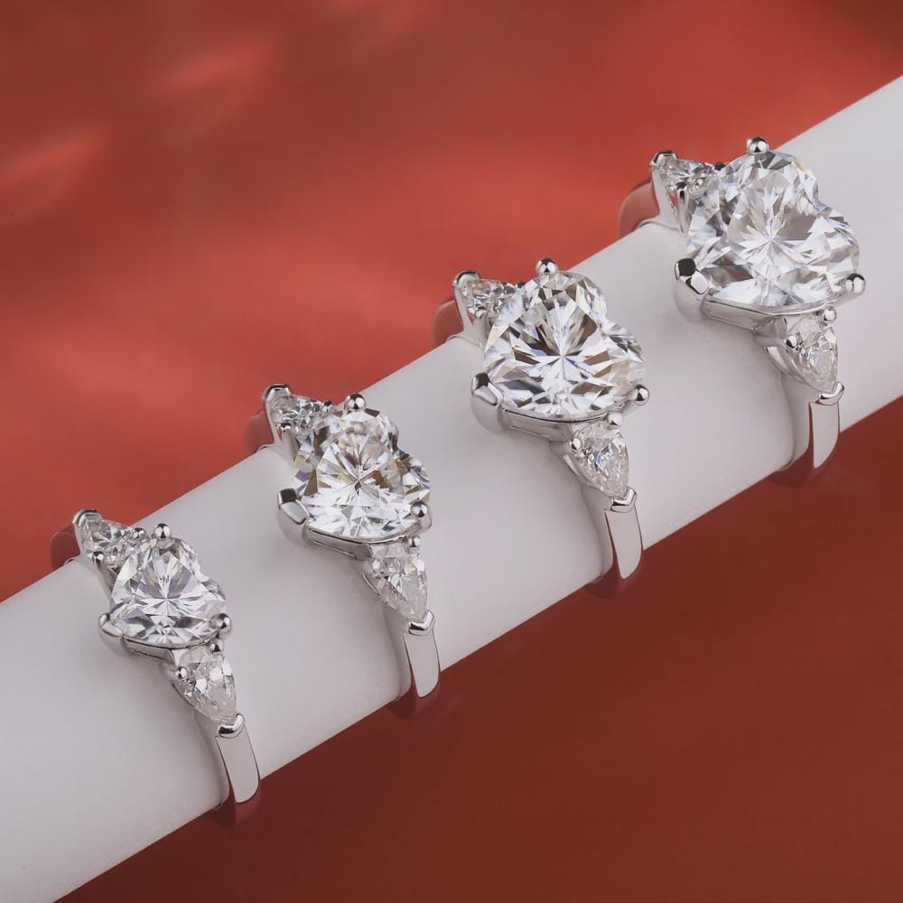 • Stone Shape: Heart (Center), Pear (Side Stones)