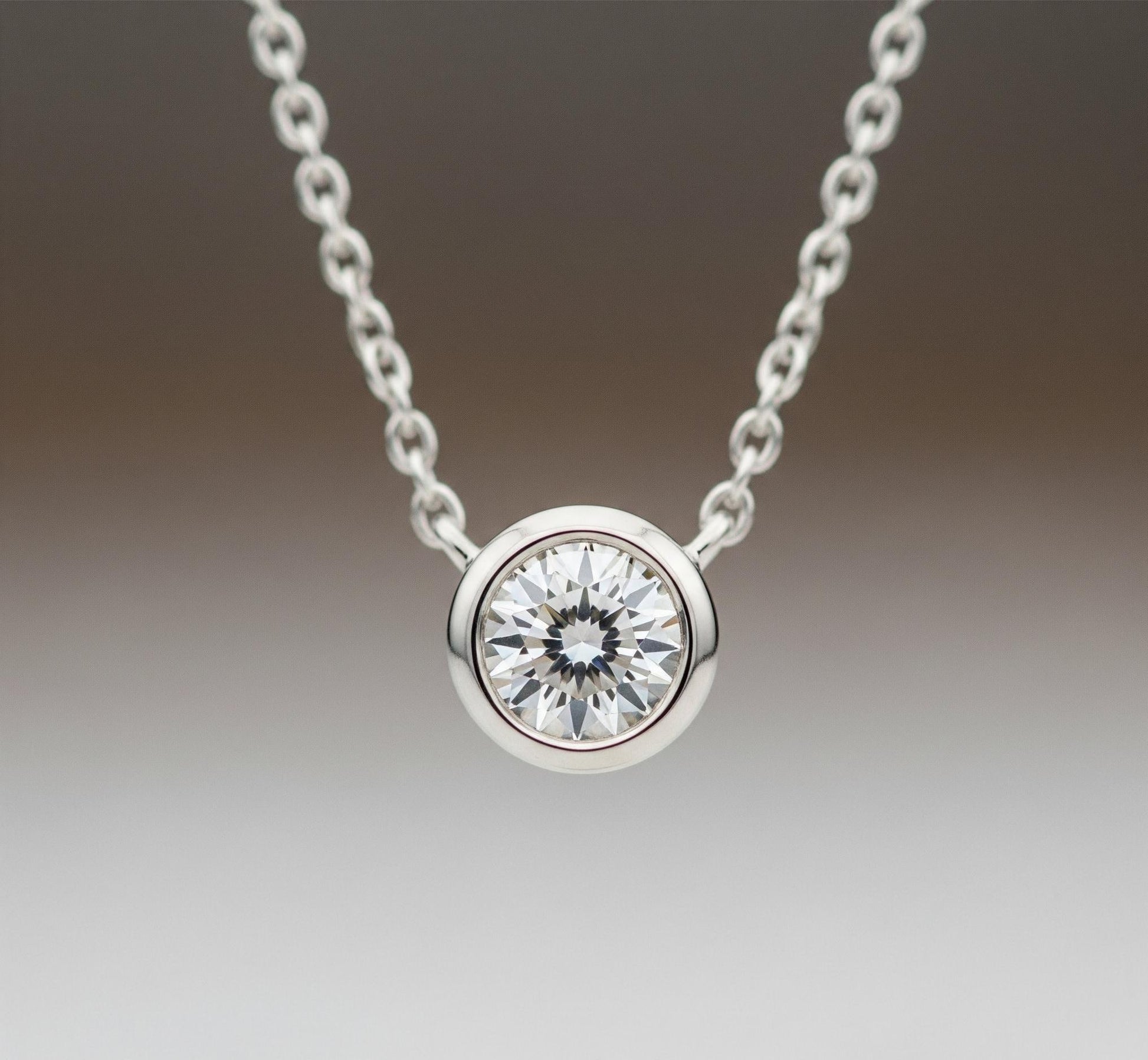Minimalist Bezel Silver Plated Necklace, 18K White Gold Plated Solitaire Moissanite Necklace, Moissanite Bezel Pendant, Gift For Her.