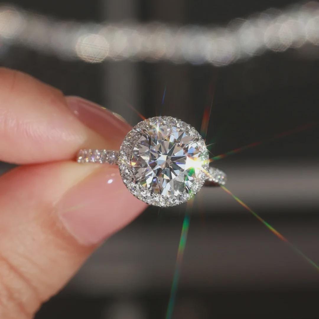 Radiate Sophistication with Opulence Aura’s Handcrafted Round Cut Moissanite Halo Ring, Pave Engagement Ring, Sterling Silver Wedding Ring, Anniversary Gift, Unique Promise Ring, Gift for Her.