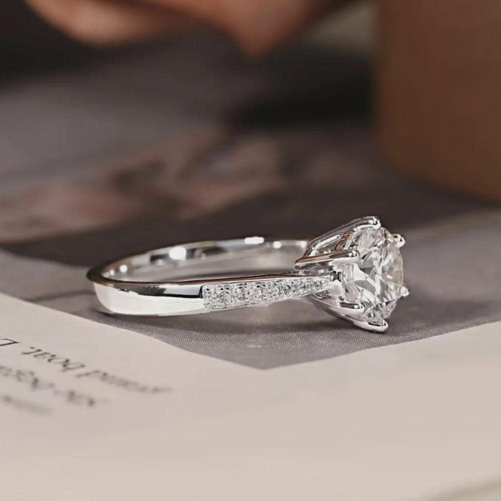 Radiate Sophistication with Opulence Aura’s Handcrafted Round Moissanite 6-Prong Engagement Ring, Pave Band, Solitaire Wedding Ring, Classic Bridal Ring, Anniversary Gift, White Gold.