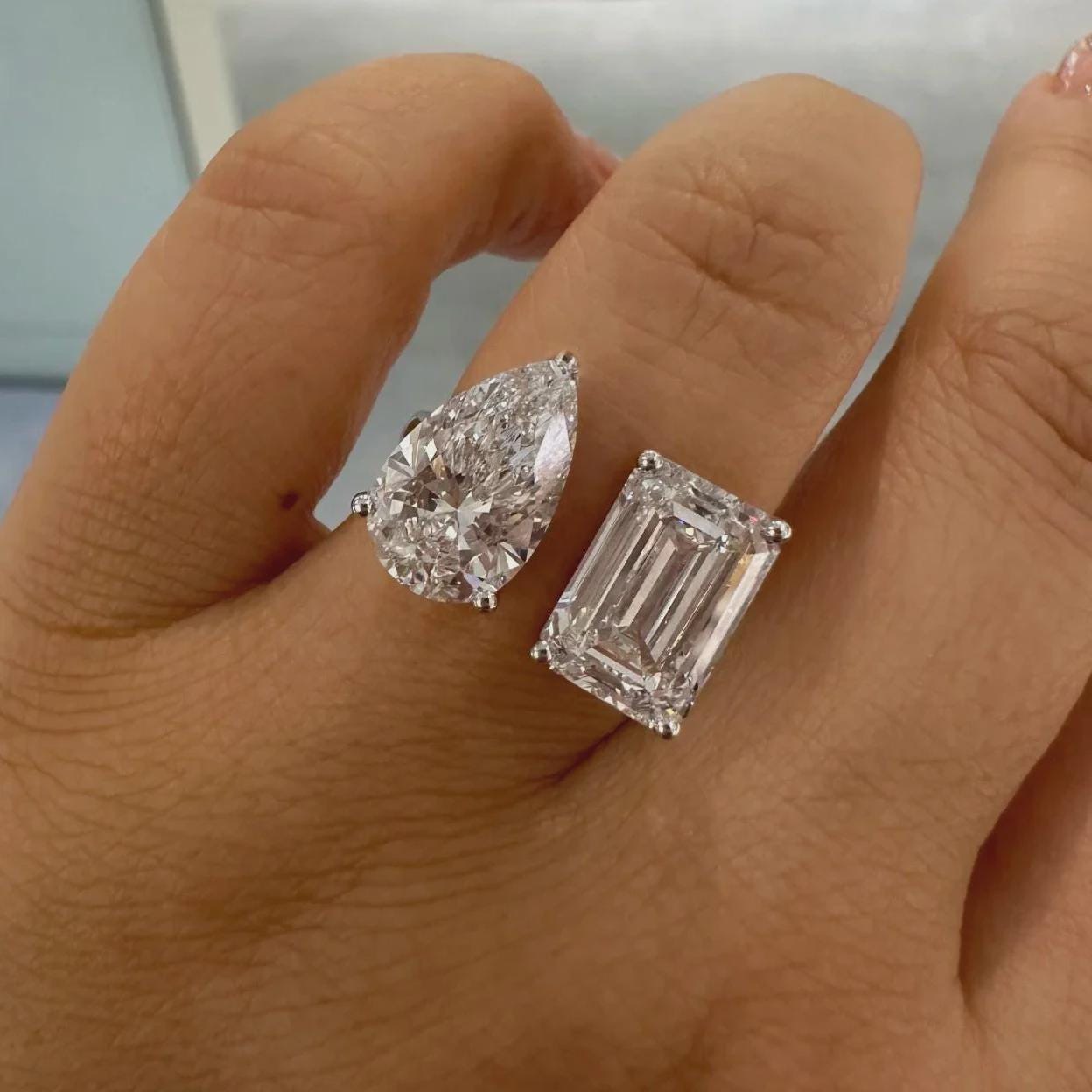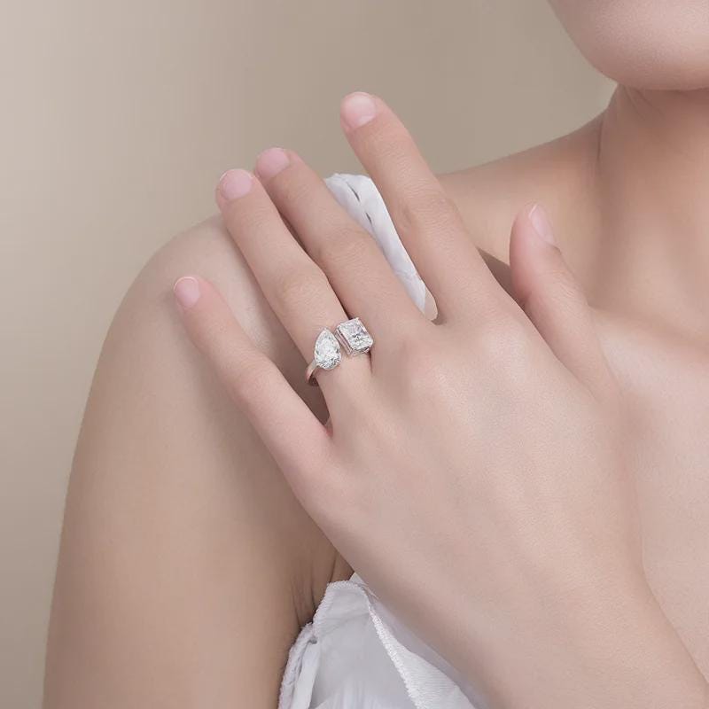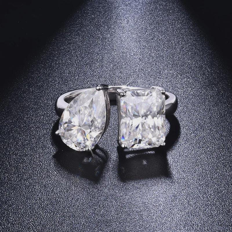 Radiate Sophistication with Opulence Aura’s Handcrafted Toi Et Moi Ring Engagement Ring, Pear and Radiant Cut Two Stone Ring, Bypass Wedding Ring, Anniversary Gift, Promise Ring, Gift for Her.