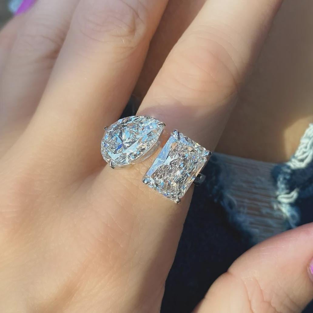 Toi Et Moi Ring Engagement Ring, Pear and Radiant Cut Two Stone Ring, Bypass Wedding Ring, Anniversary Gift, Promise Ring, Gift for Her